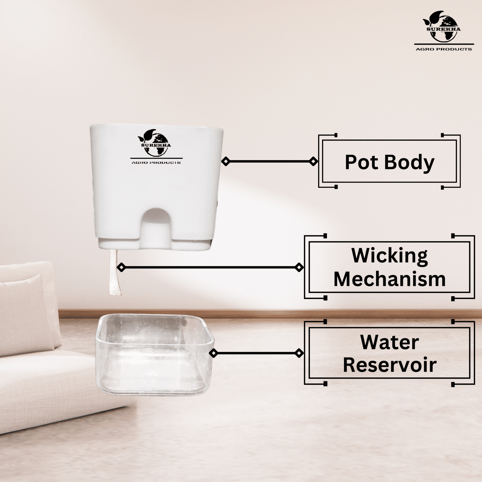 - Pot type & size: 5″ Premium Self-Watering Pot (inner reservoir)